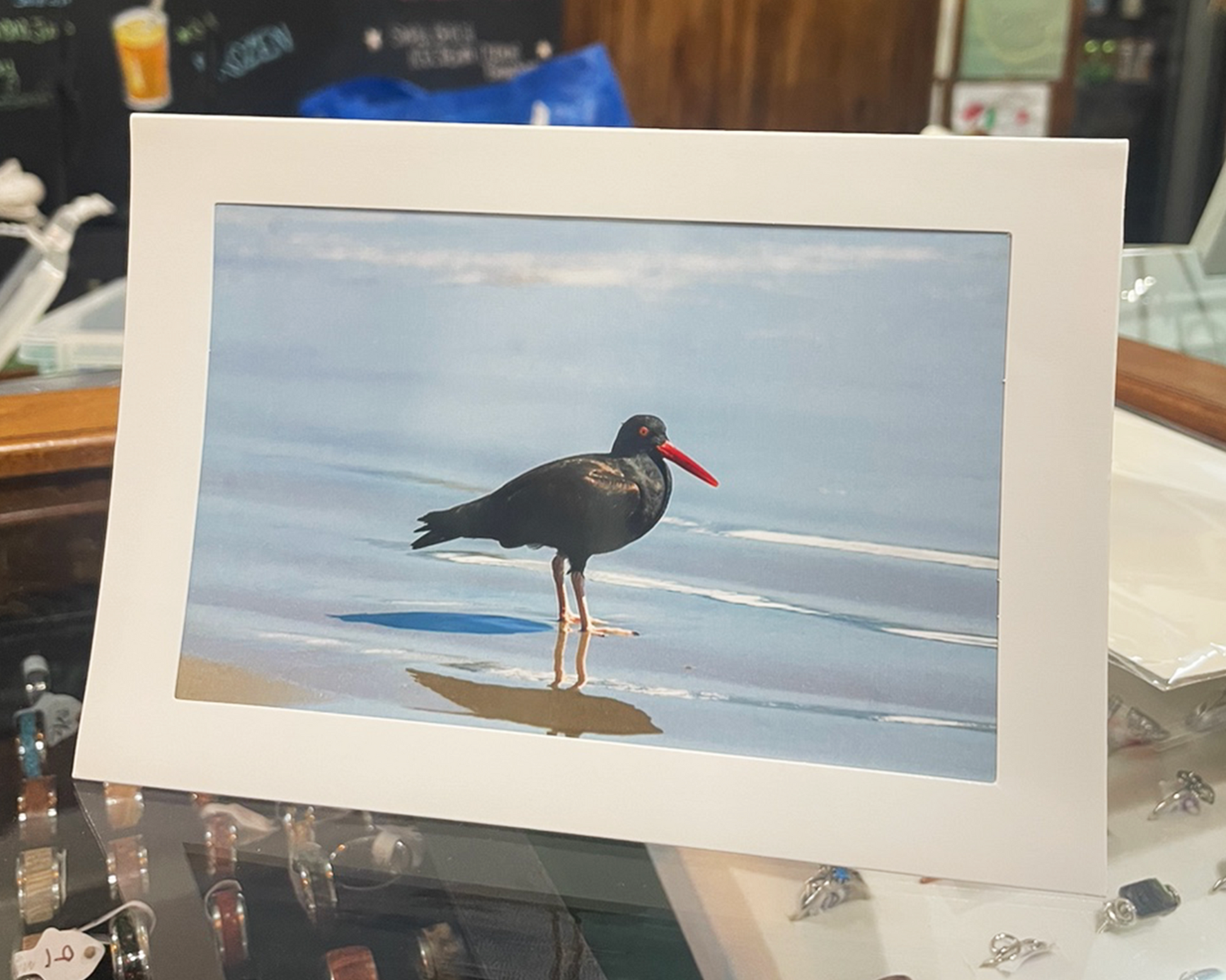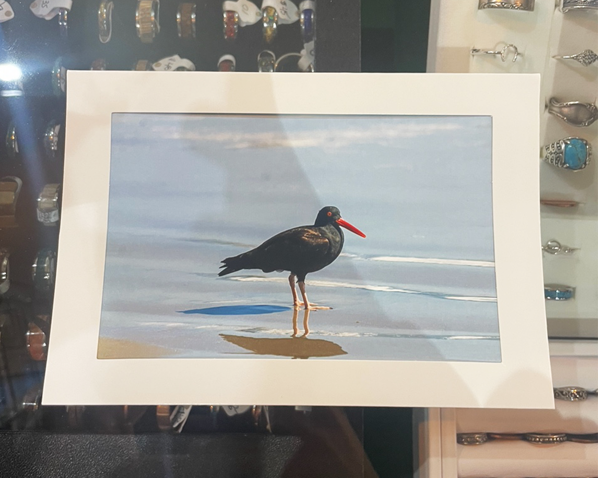 Bring the coastal charm of Monterey to your correspondence with this stunning 4x6 note card showcasing a striking black oystercatcher wading along the shore of Little Trefoil Island. With its vivid orange beak and calm reflection in the water, this serene moment captures the natural beauty and unique wildlife of the California coast.